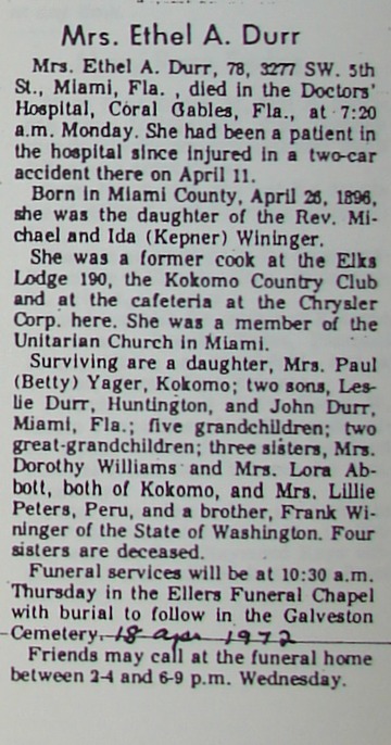 DURREthel    26 Apr 1893 17 Apr 1972 20 Apr 1972  78  2nd Add; Sec 1 158  5