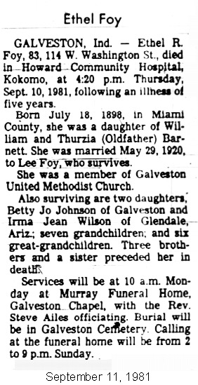 FOYEthel R  Barnett  18 Jul 1898 10 Sep 1981 14 Sep 1981  83  4th Add; Sec 1 047  2
