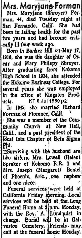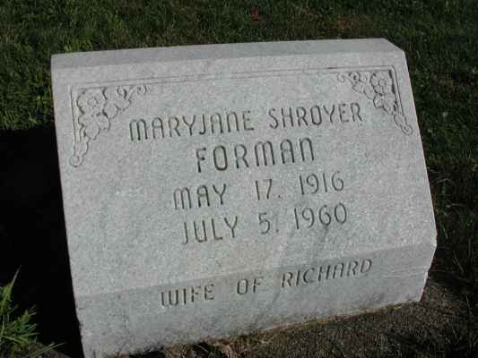 FORMANMary Jane  Shroyer  17 May 1916 5 Jul 1960 11 Jul 1960  44  Walkway 228  1