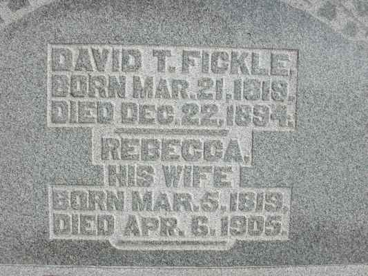 FICKLEDavid T. Sr.    21 Mar 1819 22 Dec 1894 23 Dec 1894  75  Old Add 206  1