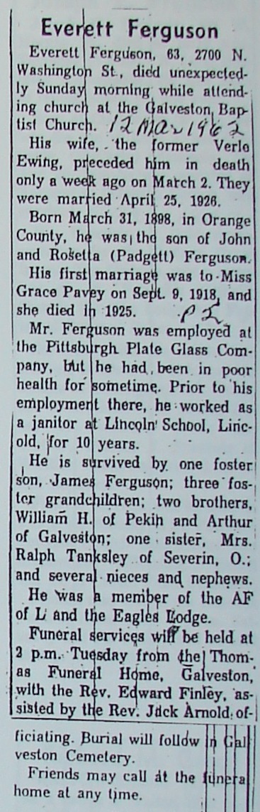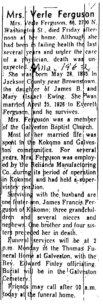 FERGUSONVerle    28 May 1895 2 Mar 1962 5 Mar 1962  66  3rd Add; Sec 1 052  5