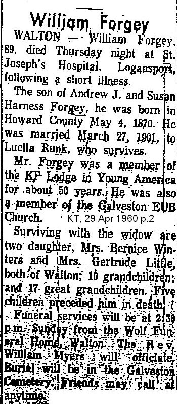 FORGEYLuella  Runk  16 Nov 1878 2 Dec 1960 4 Dec 1960  82  1st Add; Sec 1 004  7