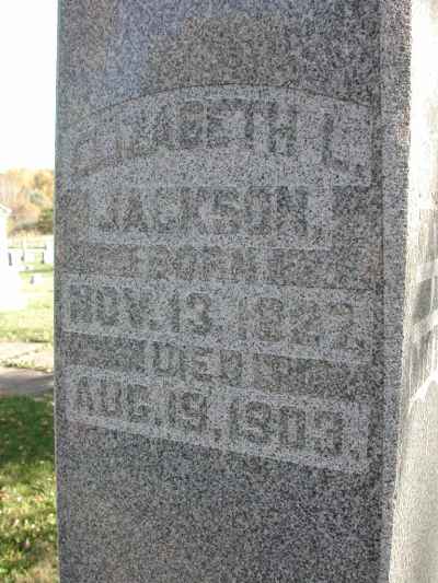 JACKSONElizabeth L.    13 Nov 1827 19 Aug 1903 19 Aug 1903  75  Old Add 169  2