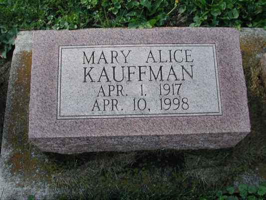 KLISEMary Alice (See: Kauffman)    1 Apr 1917 10 Apr 1998   81  2nd Add; Sec 1 007