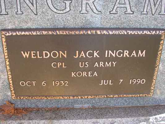INGRAMWeldon Jack "Alabam"   6 Oct 1932 7 Jul 1990 11 Jul 1990 US Army 57  5th Add; Sec 1 158  3