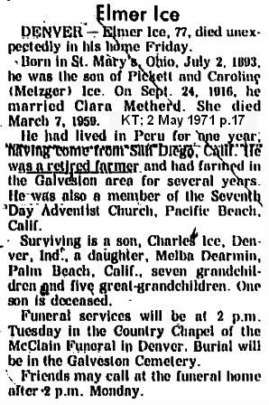 ICEElmer P.    2 Jul 1893 30 Apr 1971 4 May 1971  77  2nd Add; Sec 1 150  1