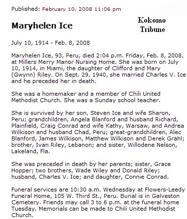 ICEMaryhelen  Riley  10 Jul 1914 8 Feb 2008   93