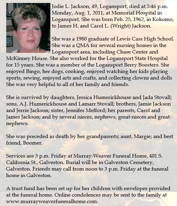 JACKSONJodie Lynne    25 Feb 1962 1 Aug 2011 5 Aug 2011  49  7th Add Sec 1 134  1