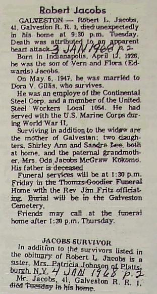 JACOBSRobert Lee    17 Apr 1926 2 Jan 1968 5 Jan 1968 US Marines WWII 41  4th Add; Sec 1 097  4