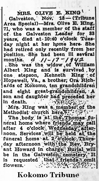KINGOlive "Ollie" E.    1871 17 Nov 1942 19 Nov 1942  71  Old Add 244  5