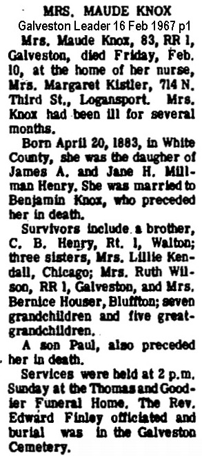 KNOXMaud H.  Henry  20 Apr 1884 10 Feb 1967 12 Feb 1967  82  4th Add; Sec 1 106  2