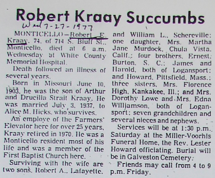 KRAAYRobert E.    10 Jun 1903 27 Jul 1977 30 Jul 1977  74  2nd Add; Sec 1 119  1