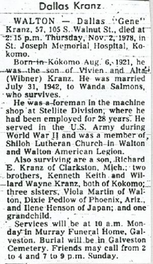 KRANZDallas E "Gene"    6 Aug 1921 2 Nov 1978 6 Nov 1978 U.S. Army WWII 57  4th Add; Sec 1 089  1