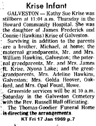 KRISEKathy Sue    16 Jan 1969 16 Jan 1969 18 Jan 1969  INF  2nd Add; Sec 1 137  1