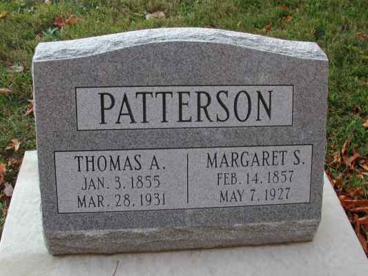 PATTERSONMargaret S.    14 Feb 1857 7 May 1927 9 May 1927  70  2nd Add; Sec 1 190  1