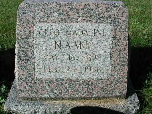 NAMECleo Madaline    16 May 1898 29 Feb 1936 2 Mar 1936  37  2nd Add; Sec 1 026  3