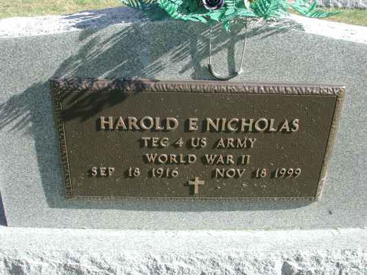 NICHOLASHarold E.    18 Sep 1916 18 Nov 1999 20 Nov 1999 US Army 1936-39 & 1942-45 WWII 83  3rd Add; Sec 1 218  4