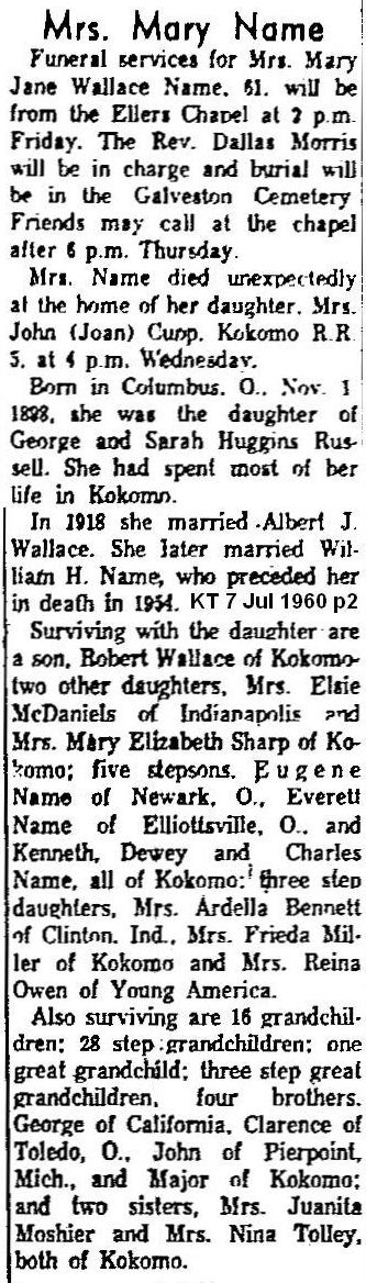 NAMEMary Jane W.    1 Nov 1898 6 Jul 1960 8 Jul 1960  61  2nd Add; Sec 1 026  6