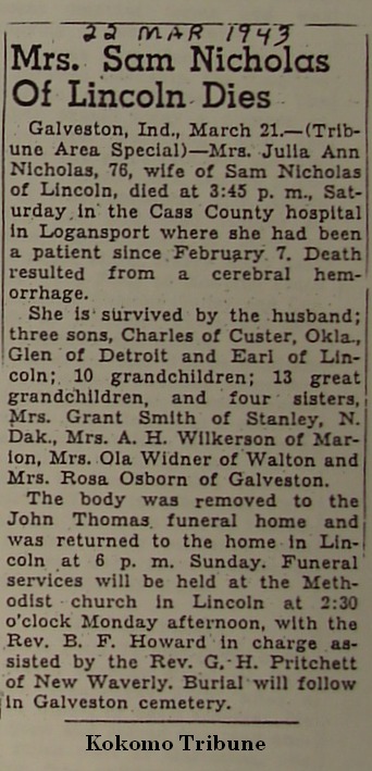 NICHOLASJulia Ann    23 Feb 1867 20 Mar 1943 22 Mar 1943  76  2nd Add; Sec 1 030  2