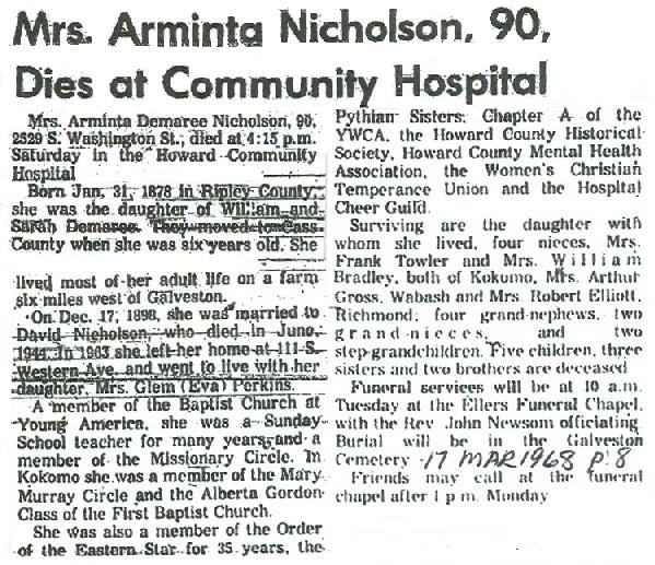 NICHOLSONArminta    31 Jan 1878 16 Mar 1968 19 Mar 1968  90  1st Add 79  7