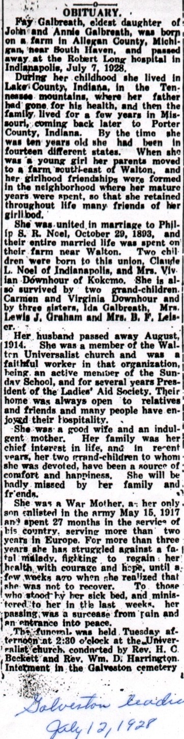 NOELFay Galbreath    1869 7 Jul 1928 11 Jul 1928    1st Add; Sec 1 151  2
