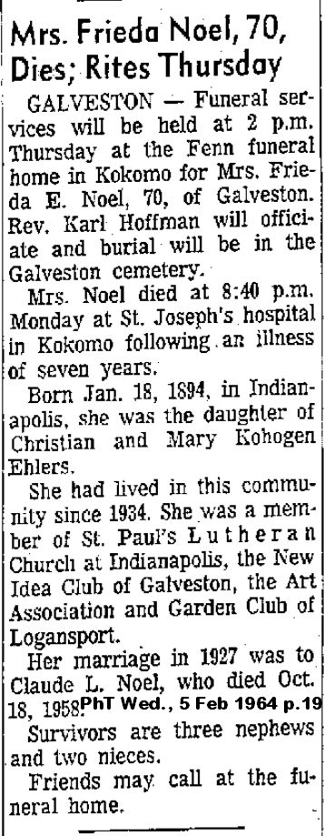 NOELFrieda Ehlers    18 Jan 1894 3 Feb 1964 6 Feb 1964  70  1st Add; Sec 1 151  5