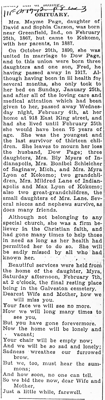 PEELEMae Bunnell    12 May 1884 28 Jan 1957 30 Jan 1957  72  Old Add 171  2