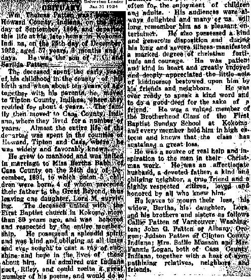 PATTERSONThomas A.    3 Jan 1855 28 Mar 1931 30 Mar 1931  76  2nd Add; Sec 1 190  2