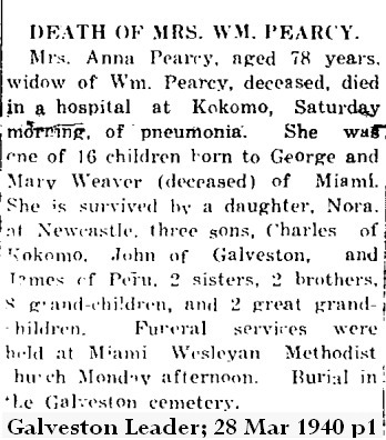 PEARCYLaura Lee Ault    1887 12 Aug 1939 15 Aug 1939  51  3rd Add; Sec 1 110  1