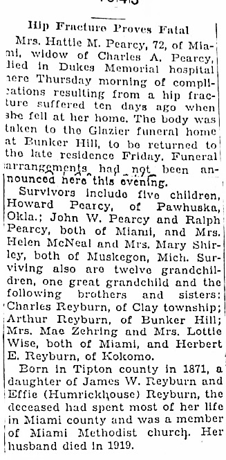 PEARCYHattie M.    1871 30 Dec 1943 2 Jan 1944  73  1st Add; Sec 1 157  2