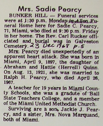 PEARCYSadie C.    9 Apr 1897 20 Dec 1968 23 Dec 1968  71  4th Add; Sec 2 043  2