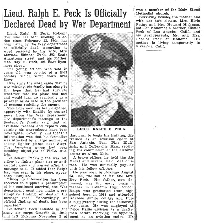 PECKRalph E. (Lt.)   23 Aug 1920 22 Feb 1944  US Army Air Corps WWII KIA 23  Old Add 172  4