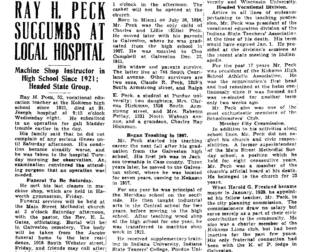 PECKRay Harrison    26 Jul 1888 6 Nov 1940 9 Nov 1940  52  Old Add 172  1