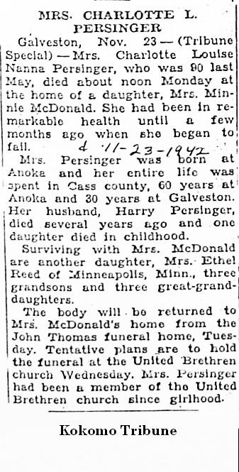 PERSINGERCharlotte Louise     May 1852 23 Nov 1942 25 Nov 1942  90  2nd Add; Sec 1 204  2