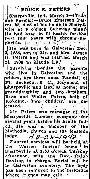 PETERSBruce Emerson    5 Dec 1886 28 Feb 1942 3 Mar 1942  55  1st Add; Sec 1 113  3