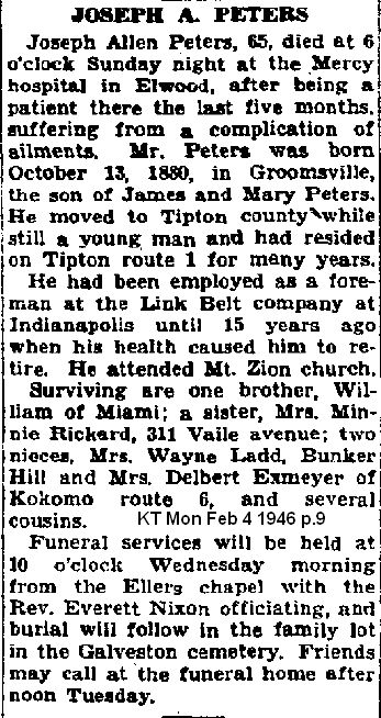 PETERSJoseph A.    13 Oct 1880 3 Feb 1946 6 Feb 1946  65  Old Add 223  3