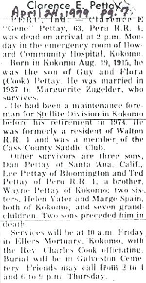 PETTAYClarence Eugene (Gene)    19 Aug 1915 23 Apr 1979 27 Apr 1979  63  4th Add; Sec 1 036  1