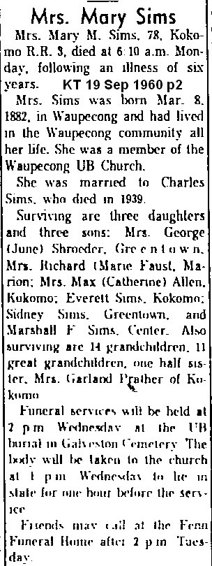 SIMSMary Myrtle    8 Mar 1882 19 Sep 1960 21 Sep 1960  78  1st Add; Sec 1 161  3