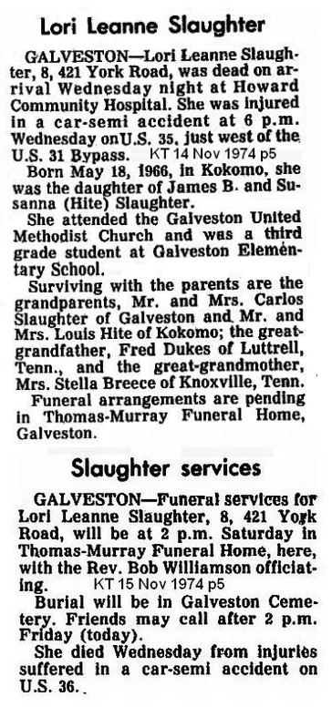 SLAUGHTERLori Leanne    18 May 1966 13 Nov 1974 16 Nov 1974  8  4th Add; Sec 2 113  4