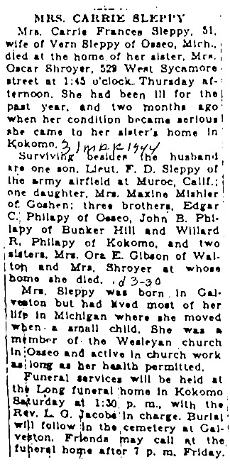 SLEPPYCarrie Frances  Philapy  25 Aug 1892 30 Mar 1944 1 Apr 1944  51  Old Add 228  7