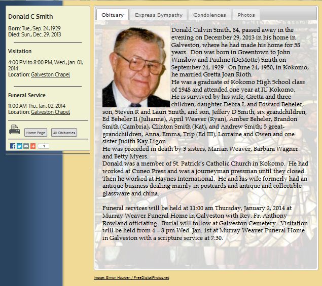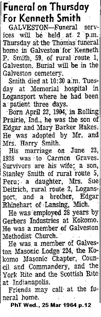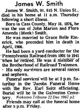 SMELSERCharles A. (Sr.)   10 Apr 1913 10 Feb 1984 13 Feb 1984  70  4th Add; Sec 2 029  3