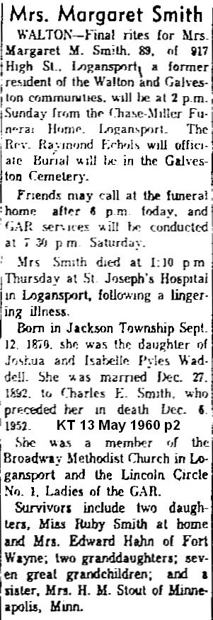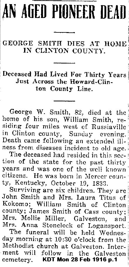 SMALLWOODJames H.    4 May 1837 29 Mar 1911 30 Mar 1911 Co A 20th Ind Inf 73  Old Add 280  2