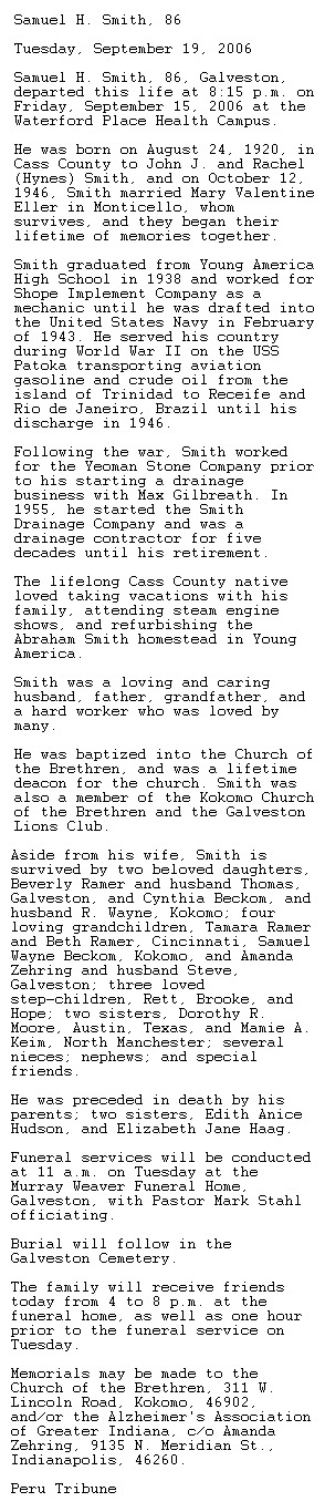 SMITHSamuel Hynes    24 Aug 1920 15 Sep 2006 19 Sep 2006 US Navy  WWII 86  5th Add; Sec 1 201  1
