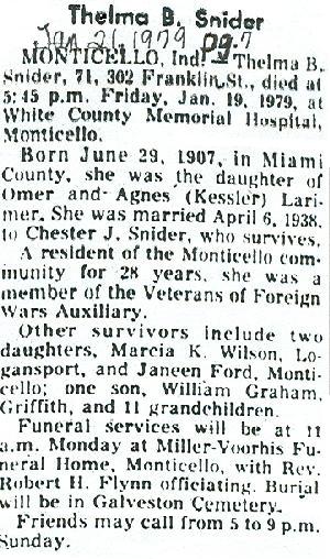 SNYDERThelma B.  Larimer  29 Jun 1907 19 Jan 1979 22 Jan 1979  71  2nd Add; Sec 1 164  3
