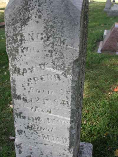 SPERRYNancy Mahala    21 May 1841 4 Nov 1892 5 Nov 1892  51  Old Add 171  1