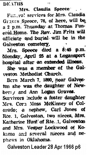 SPEECEClaudia  Graves  10 Mar 1889 25 Apr 1966 28 Apr 1966  77  IOOF Add 011  3