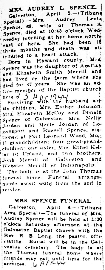 SPENCEAudrey Leota  Merrill  12 Nov 1874 5 Apr 1944 8 Apr 1944  69  1st Add; Sec 1 044  3