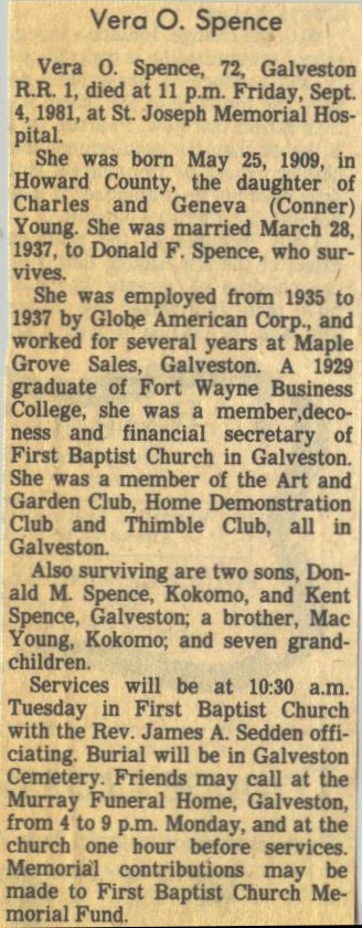 SPENCEVera O.  Young  25 May 1909 4 Sep 1981 8 Sep 1981  72  Old Add 152  3