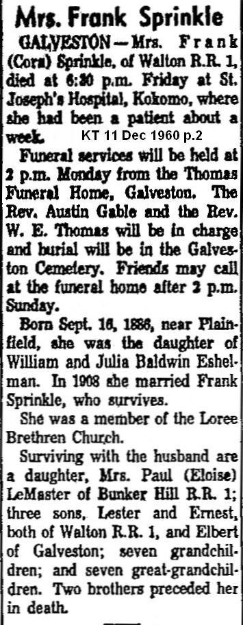 SPRINKLECora V.  Eshelman  16 Sep 1886 9 Dec 1960 12 Dec 1960  74  3rd Add; Sec 1 096  2