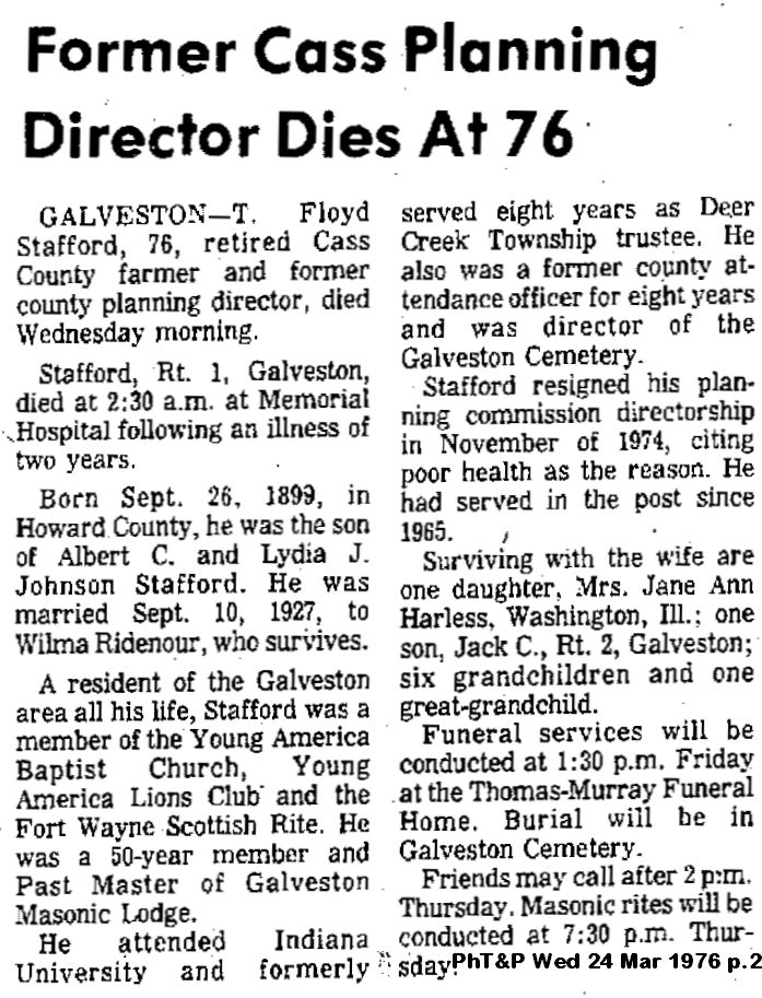 SWAFFORDWarren B.    24 Mar 1897 22 Mar 1972 25 Mar 1972  74  3rd Add; Sec 1 179  1